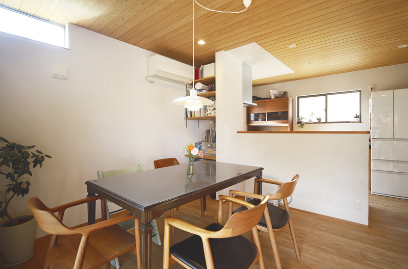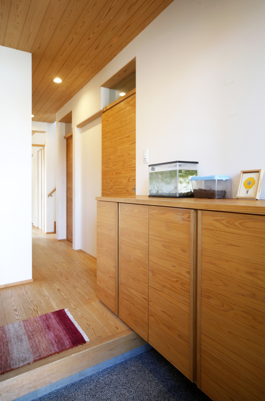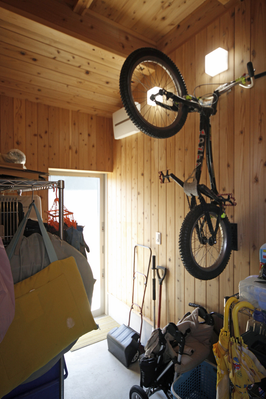 自然豊かな地に建つ子育て世帯の2階建て。 リビングダイニングの大きな3間の開口部からは、隣接する竹林の景色を楽しめます。大きなウッドデッキでプールを出したり、ハンモックに揺られたり、家で過ごす時間がより楽しくなりました。 玄関には自転車やアウトドア用品を置ける広々とした土間収納も設けています。