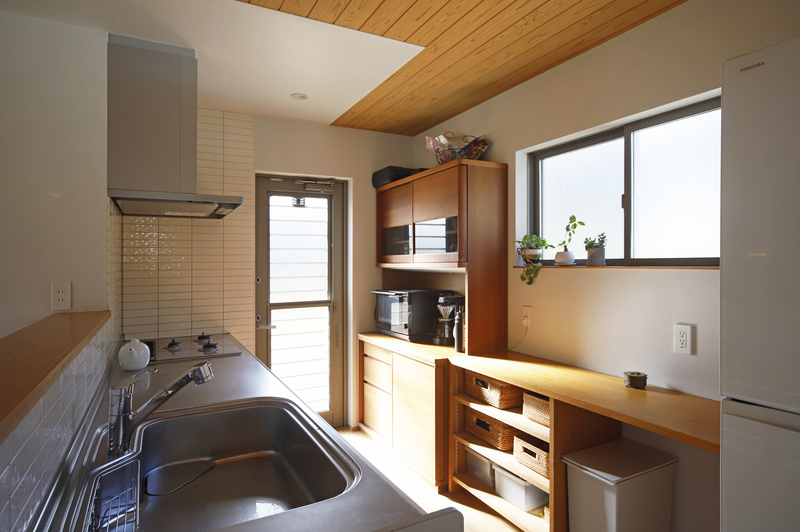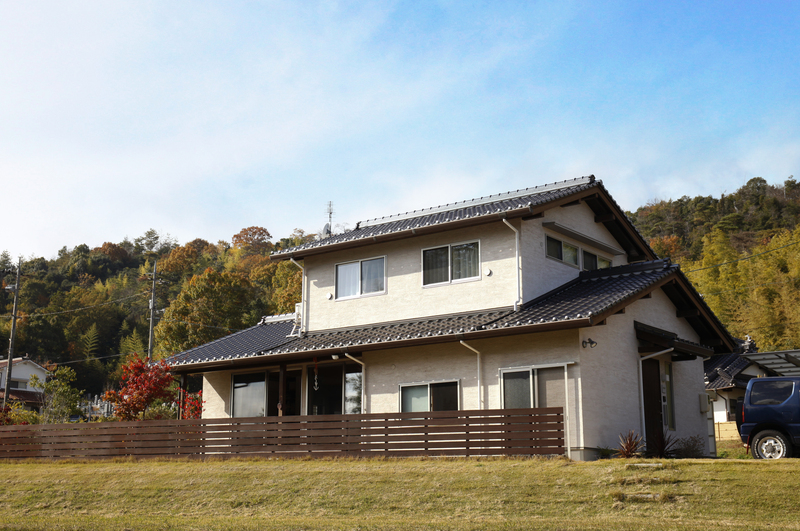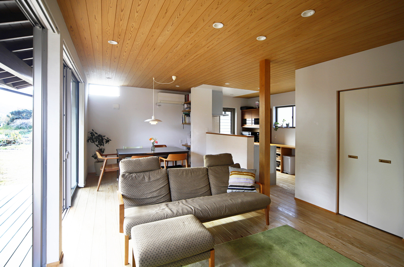 自然豊かな地に建つ子育て世帯の2階建て。 リビングダイニングの大きな3間の開口部からは、隣接する竹林の景色を楽しめます。大きなウッドデッキでプールを出したり、ハンモックに揺られたり、家で過ごす時間がより楽しくなりました。 玄関には自転車やアウトドア用品を置ける広々とした土間収納も設けています。