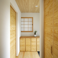 無垢材の製作収納のある玄関 月日とともに色が濃くなっていく